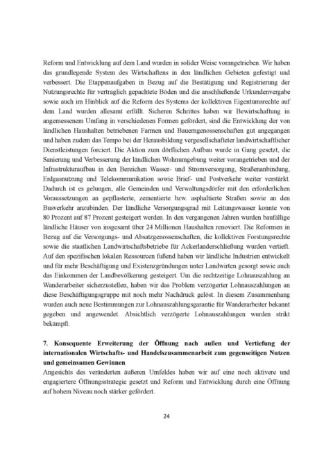 ländliche Häuser von insgesamt über 24 Millionen Haushalten renoviert. Die Reformen in