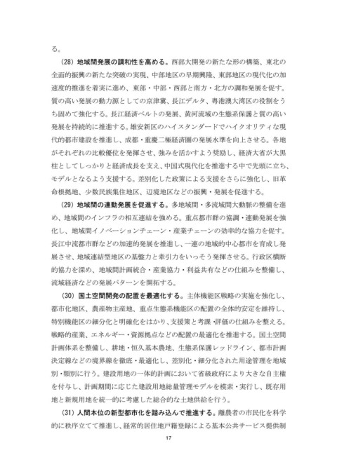 (28)地域間発展の調和性を高める。西部大開発の新たな形の構築、東北の