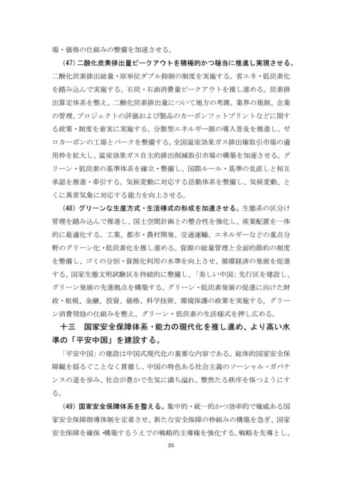 (47)二酸化炭素排出量ピークアウトを積極的かつ穏当に推進し実現させる。
