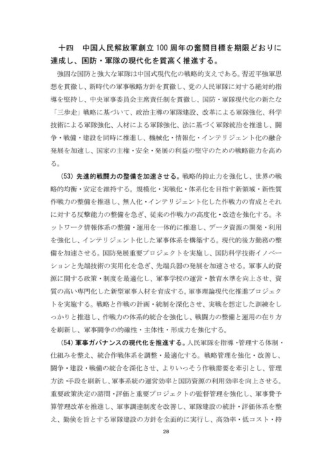 (53)先進的戦闘力の整備を加速させる。戦略的抑止力を強化し、世界の戦