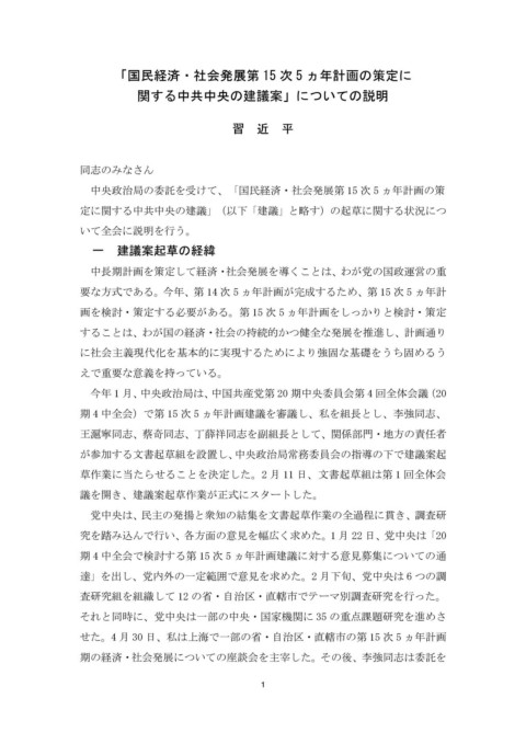 Page 2 - 「国民経済・社会発展第15次5ヵ年計画の策定に関する中共中央の建議案」に関する習近平総書記の説明