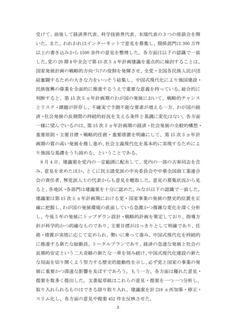 Page 3 - 「国民経済・社会発展第15次5ヵ年計画の策定に関する中共中央の建議案」に関する習近平総書記の説明
