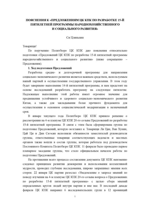 Page 2 - ПОЯСНЕНИЯ К «ПРЕДЛОЖЕНИЯМ ЦК КПК ПО РАЗРАБОТКЕ 15-Й ПЯТИЛЕТНЕЙ ПРОГРАММЫ НАРОДНОХОЗЯЙСТВЕННОГО И СОЦИАЛЬНОГО РАЗВИТИЯ»