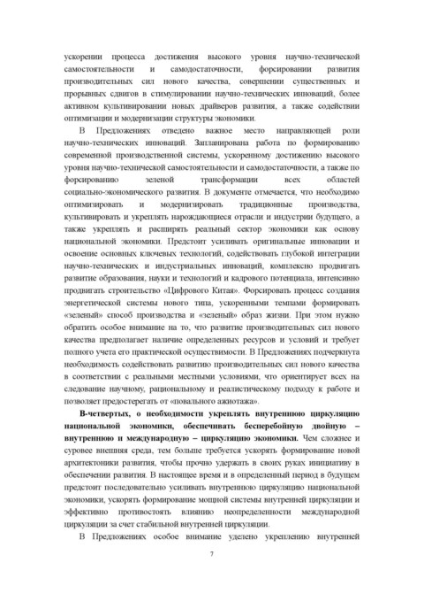 экономики, ускорять формирование мощной системы внутренней циркуляции и