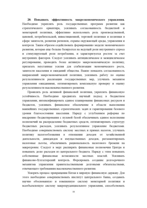 20. Повышать эффективность макроэкономического управления.