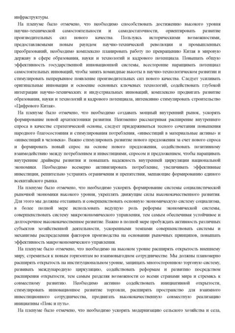 На пленуме было отмечено, что необходимо создавать мощный внутренний рынок, ускорять