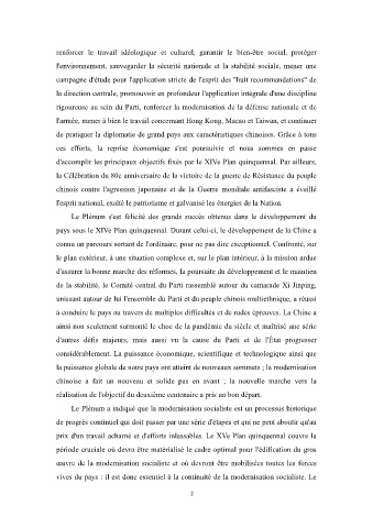 Le Plénum a indiqué que la modernisation socialiste est un processus historique