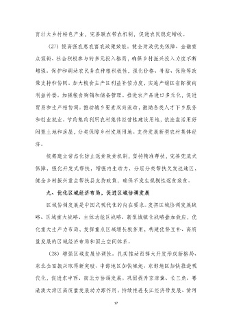 (28)增强区域发展协调性。扎实推动西部大开发形成新格局、
