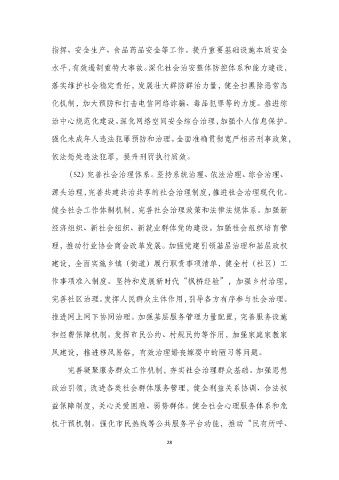 (52)完善社会治理体系。坚持系统治理、依法治理、综合治理、