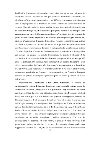 14) Poursuivre l’édification d’une Chine numérique. Il importe de