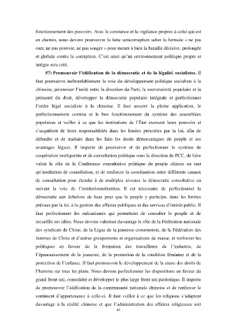 57) Promouvoir l’édification de la démocratie et de la légalité socialistes. Il