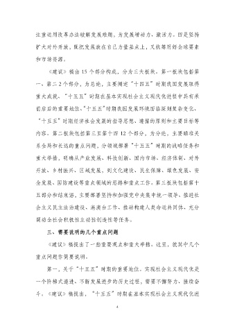《建议》稿由 15 个部分构成,分为三大板块。第一板块包括第
