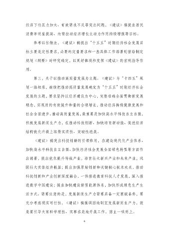 第三,关于以推动高质量发展为主题。《建议》与“十四五”规