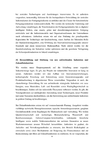 (8) Herausbildung und Stärkung von neu aufstrebenden Industrien und