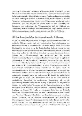 (42) Mehr Tempo beim Aufbau eines Landes mit gesunder Bevölkerung