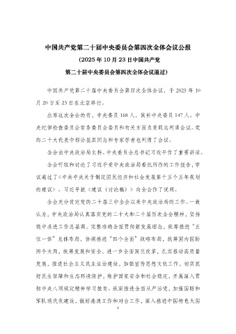 中国共产党第二十届中央委员会第四次全体会议,于 2025 年 10