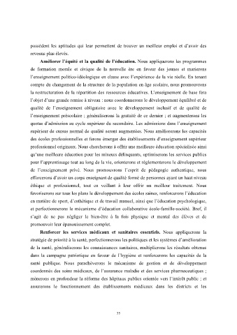 favoriserons sur tous les plans le développement des écoles saines, renforcerons l’éducation