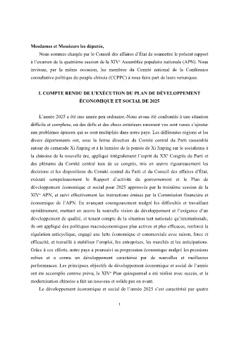 I. COMPTE RENDU DE L’EXÉCUTION DU PLAN DE DÉVELOPPEMENT