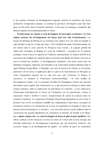 Les « quatre régions clés » se sont développées de façon de plus en plus équilibrée. Des