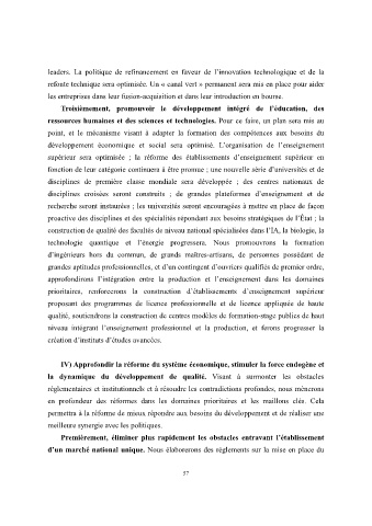 IV) Approfondir la réforme du système économique, stimuler la force endogène et