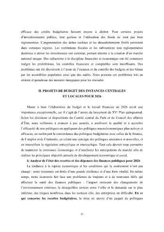 I) Analyse de l’état des recettes et des dépenses des finances publiques pour 2026