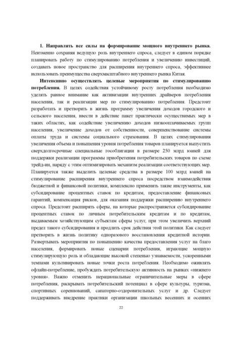 1. Направлять все силы на формирование мощного внутреннего рынка.