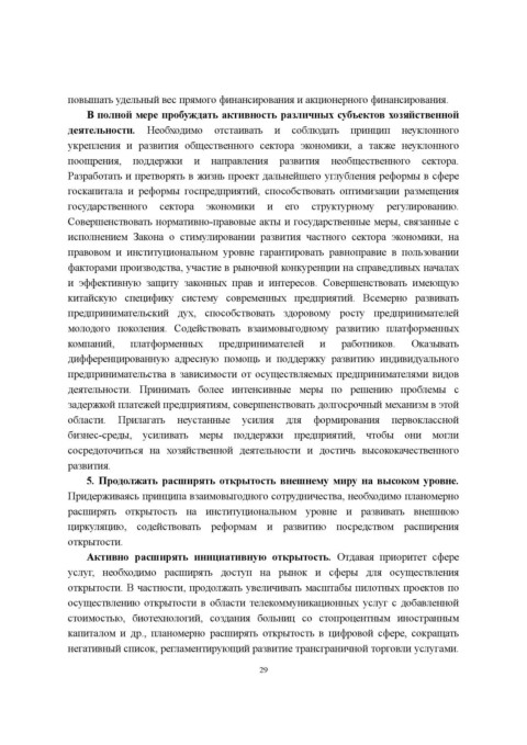 5. Продолжать расширять открытость внешнему миру на высоком уровне.