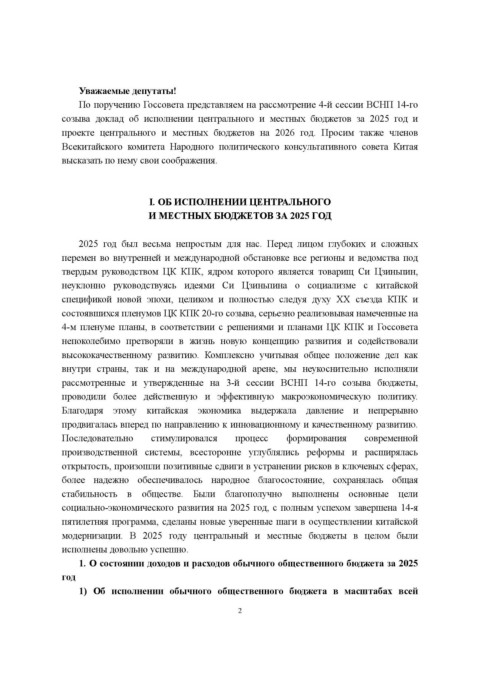Page 2 - ДОКЛАД ОБ ИСПОЛНЕНИИ ЦЕНТРАЛЬНОГО И МЕСТНЫХ БЮДЖЕТОВ ЗА 2025 ГОД И ПРОЕКТЕ ЦЕНТРАЛЬНОГО И МЕСТНЫХ БЮДЖЕТОВ НА 2026 ГОД