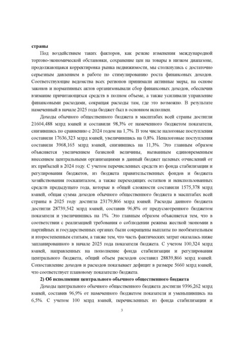 Page 3 - ДОКЛАД ОБ ИСПОЛНЕНИИ ЦЕНТРАЛЬНОГО И МЕСТНЫХ БЮДЖЕТОВ ЗА 2025 ГОД И ПРОЕКТЕ ЦЕНТРАЛЬНОГО И МЕСТНЫХ БЮДЖЕТОВ НА 2026 ГОД