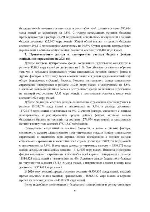 Page 43 - ДОКЛАД ОБ ИСПОЛНЕНИИ ЦЕНТРАЛЬНОГО И МЕСТНЫХ БЮДЖЕТОВ ЗА 2025 ГОД И ПРОЕКТЕ ЦЕНТРАЛЬНОГО И МЕСТНЫХ БЮДЖЕТОВ НА 2026 ГОД