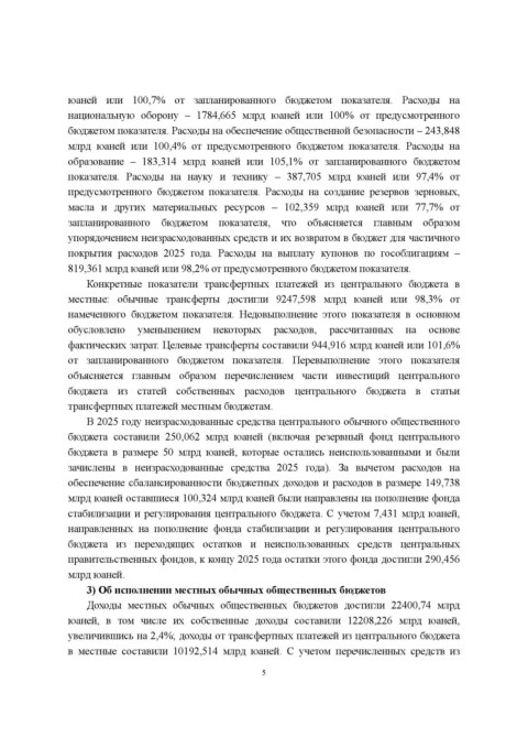 Page 5 - ДОКЛАД ОБ ИСПОЛНЕНИИ ЦЕНТРАЛЬНОГО И МЕСТНЫХ БЮДЖЕТОВ ЗА 2025 ГОД И ПРОЕКТЕ ЦЕНТРАЛЬНОГО И МЕСТНЫХ БЮДЖЕТОВ НА 2026 ГОД