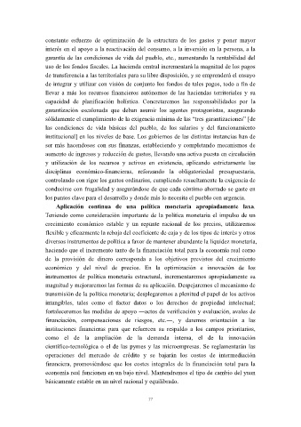 uso de los fondos fiscales. La hacienda central incrementará la magnitud de los pagos