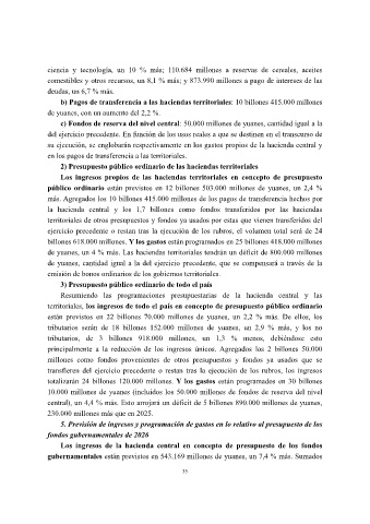 de yuanes, un 4 % más. Las haciendas territoriales tendrán un déficit de 800.000 millones