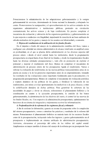 los fondos fiscales, etc. Con respecto a la administración presupuestaria, optimizaremos las