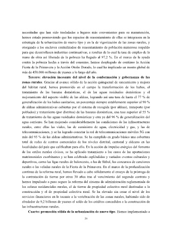 zonas rurales. Gracias al avance sólido de la acción quinquenal de saneamiento y mejora