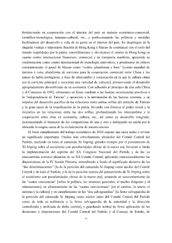 constantemente el papel de Macao como “centro, plataforma y base” [centro mundial de