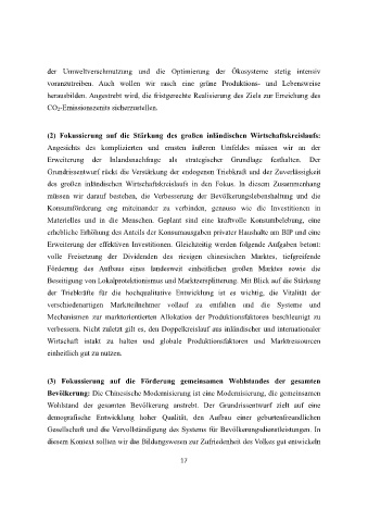 (2) Fokussierung auf die Stärkung des großen inländischen Wirtschaftskreislaufs: