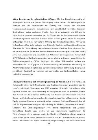 umfassenden Modellzone zur weiteren Öffnung des Dienstleistungssektors. Wir werden