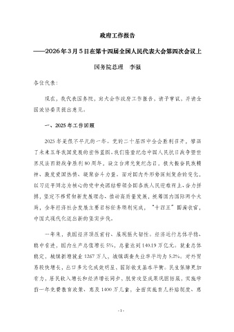 ——2026 年 3 月 5 日在第十四届全国人民代表大会第四次会议上