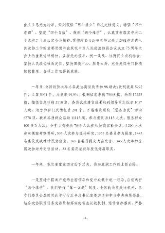 “两个维护”。我们坚持“第一议题”制度,全国政协及政协机关、各