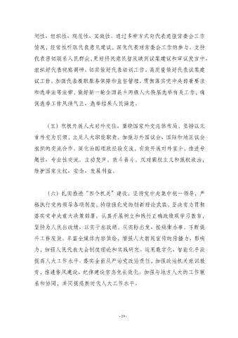 议工作。加强代表履职服务保障和监督管理。贯彻落实党中央部署要求