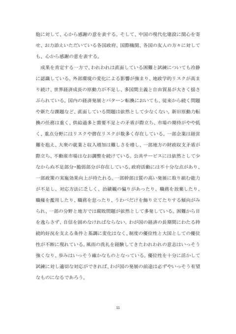 ぶられている。国内の経済発展とパターン転換においても、従来から続く問題