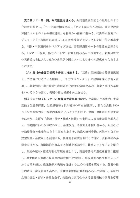 (六)農村の全面的振興を着実に推進する。「三農」関連活動を最重要課題