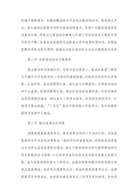 围绕实施国家发展规划,健全政策协调和工作协同机制。将国家