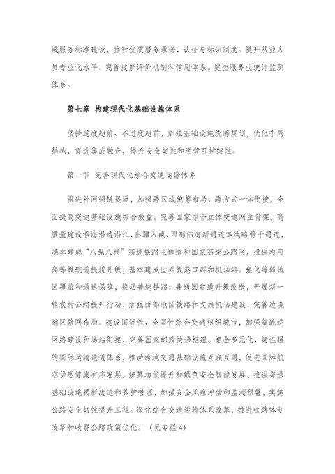 面提高交通基础设施综合效益。完善国家综合立体交通网主骨架,高
