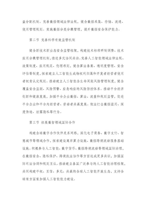 设施。积极参与人工智能、数字货币、数据跨境流动等领域国际治理,