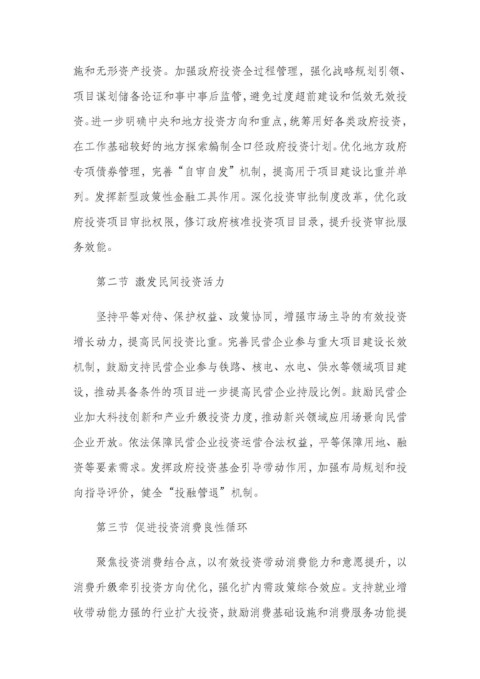 资。进一步明确中央和地方投资方向和重点,统筹用好各类政府投资,