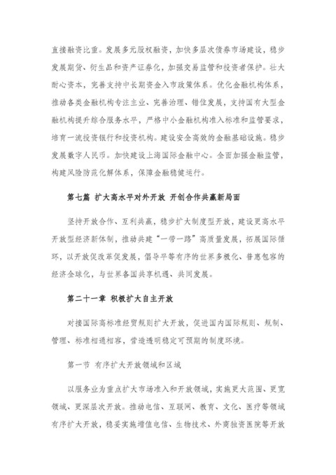 领域、更深层次开放。推动电信、互联网、教育、文化、医疗等领域
