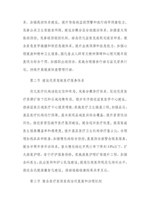 推动国家区域医疗中心提质增效。实施医疗卫生强基工程,加强县区、