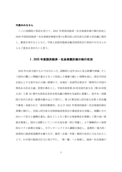 Page 2 - 2025年度国民経済・社会発展計画の執行状況と2026年度国民経済・社会発展計画案についての報告